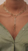 We captured the summer spirit in a necklace. Indulge in a daydream of golden splendor with our enchanting Golden Daze Necklace. The design features a round loop with an extra hanging chain in the middle.